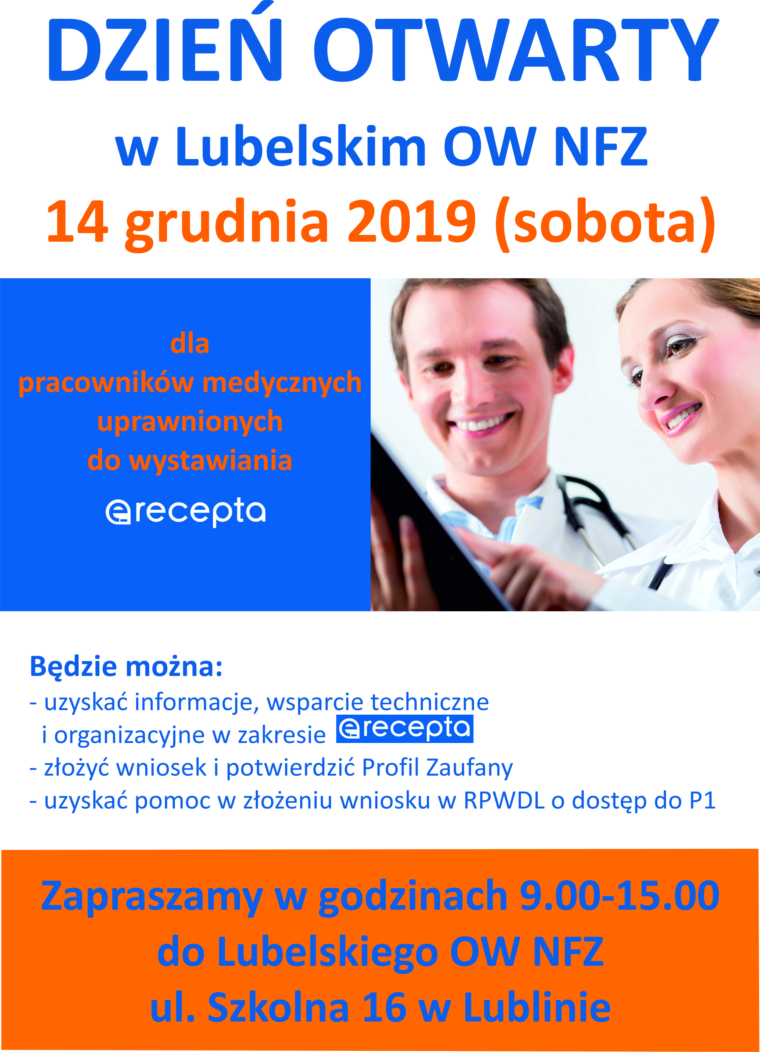 W sobotę, 14 grudnia br., Lubelski Oddział Wojewódzki NFZ organizuje Dzień Otwarty dla lekarzy w zakresie e-recepty.