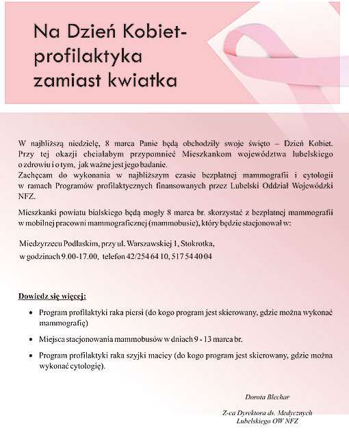 Na Dzień Kobiet - profilaktyka zamiast kwiatka