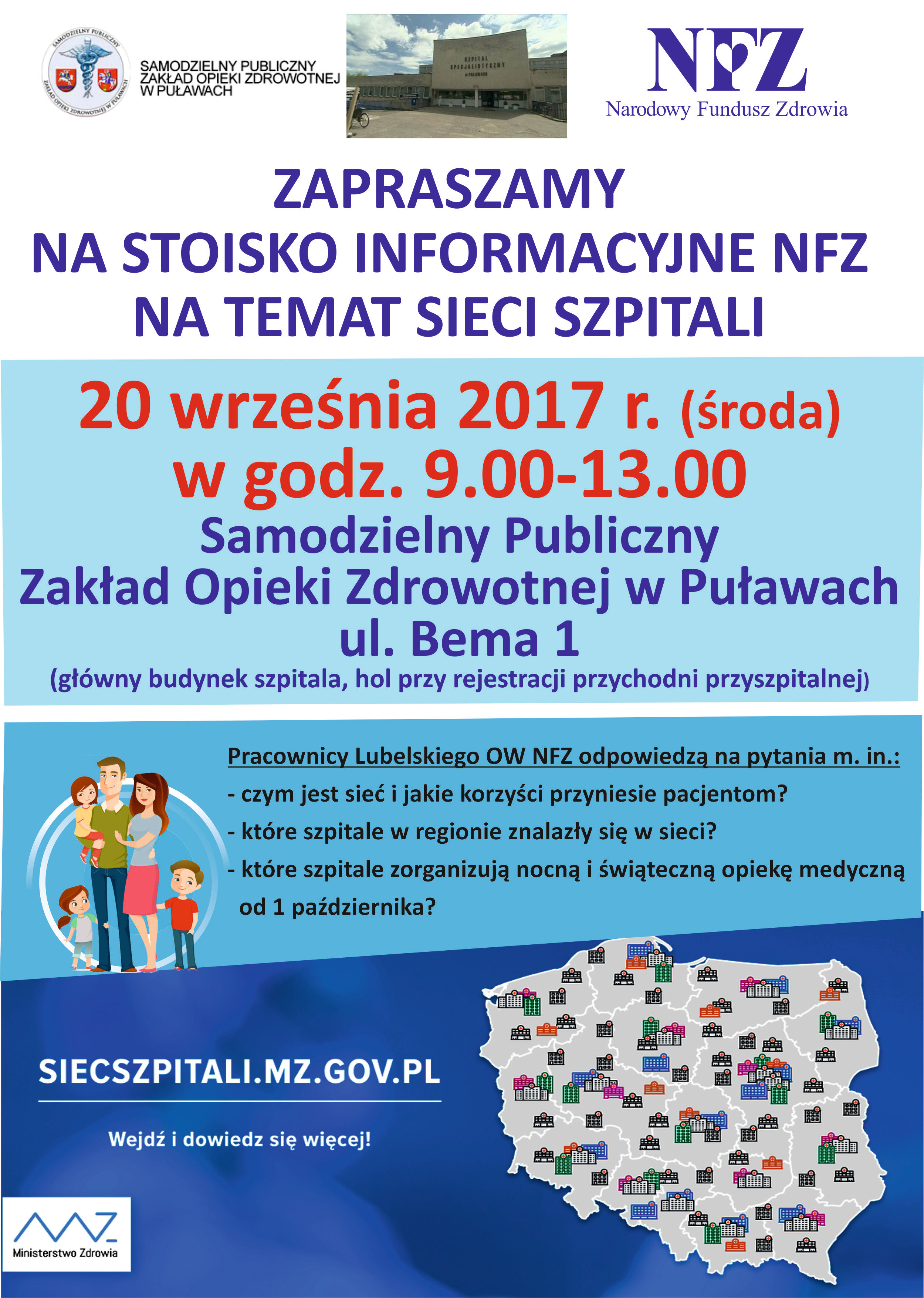 Stoisko Lubelskiego OW NFZ organizowane jest w ramach ogólnopolskiej kampanii informacyjnej Narodowego Funduszu Zdrowia na temat sieci szpitali.