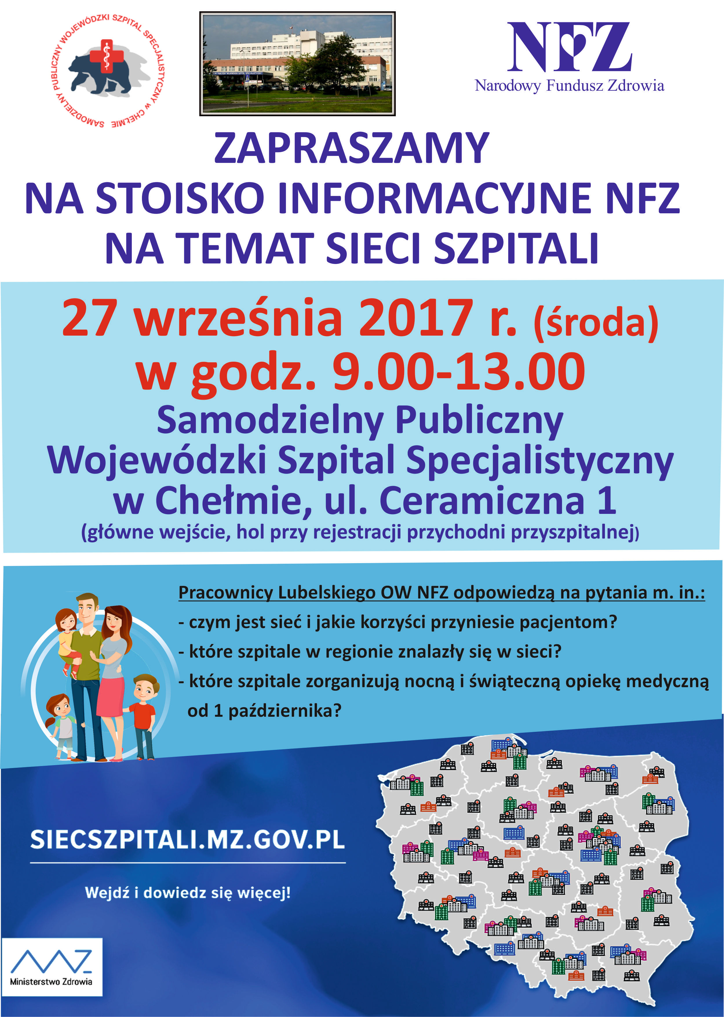 Plakat promujący stanowisko informacyjne NFZ w Szpitalu w Chełmie.