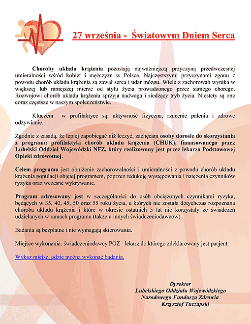 27 września - Światowym Dniem Serca