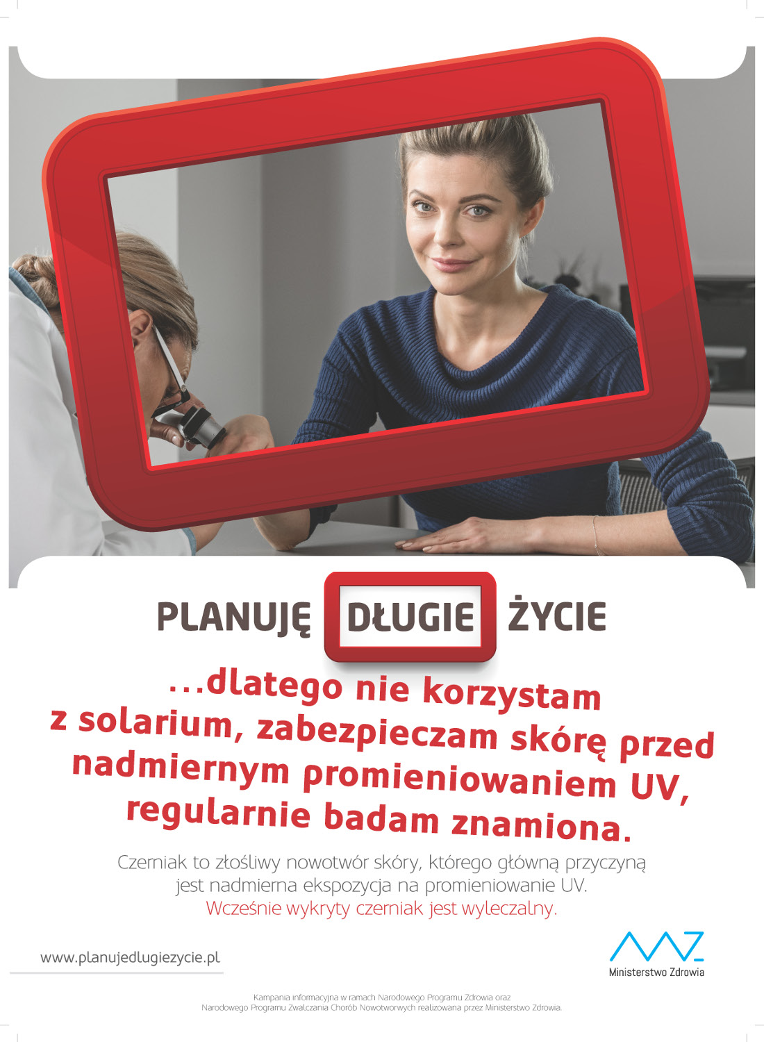 Czerniak jest obecnie najczęściej występującym nowotworem u osób w wieku 24-40 lat. W Polsce rozpoznaje się go zbyt późno, dlatego 1 na 3 pacjentów umiera z powodu tej choroby. Tymczasem wcześnie wykryta daje 97% szans na całkowite wyleczenie. W sobotę, 25 maja, Ministerstwo Zdrowia i Narodowy Fundusz Zdrowia organizują Dzień Otwarty poświęcony profilaktyce nowotworów skóry, szczególnie czerniaka w ramach kampanii społecznej Planuję Długie Życie.