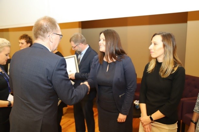 | Uczestnicy konferencji obejrzeli relację z wręczenia, przez Wojewodę Lubelskiego, Przemysława Czarnka, Medalu i Dyplomu Uznania Wojewody Lubelskiego dla Lubelskiego Oddziału Wojewódzkiego Narodowego Funduszu Zdrowia. Ceremonia miała miejsce 8 listopada 2019 roku. | ![]() |