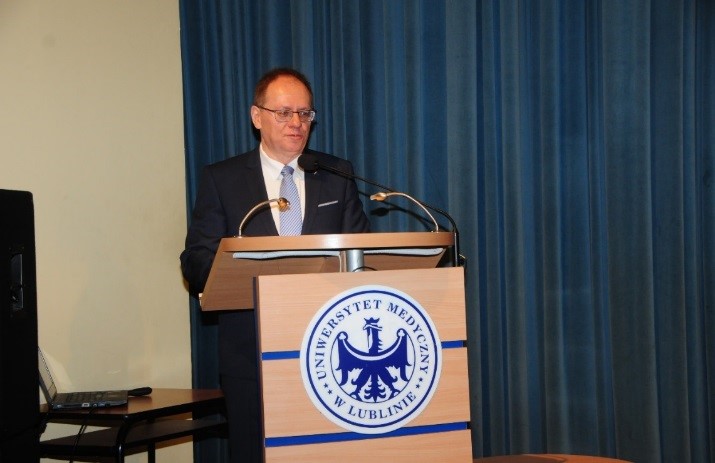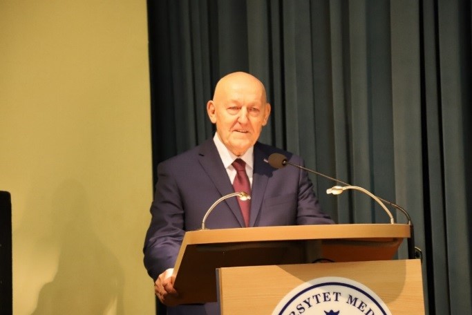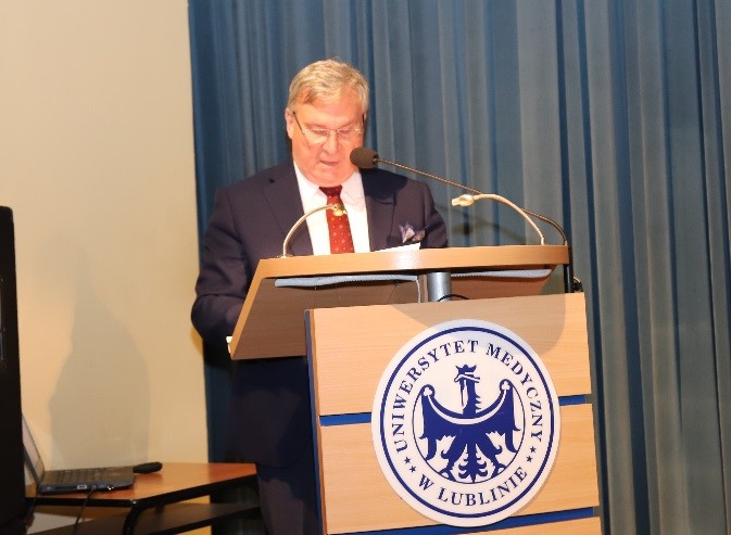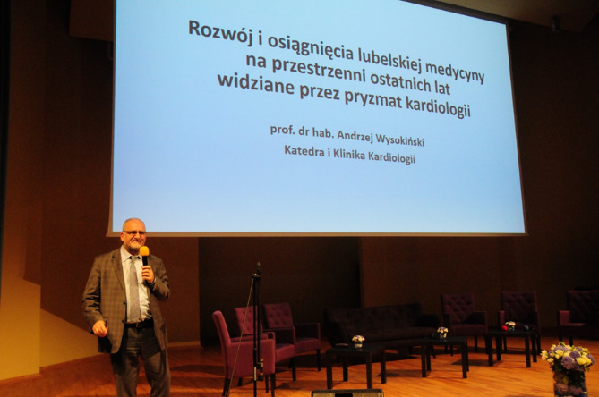 | W kolejnej części spotkania, Profesor dr hab. n. med. Andrzej Wysokiński Kierownik Katedry i Kliniki Kardiologii Samodzielnego Publicznego Szpitala Klinicznego Nr 4 w Lublinie, Konsultant Wojewódzki w dziedzinie kardiologii, wygłosił prelekcję na temat rozwoju i osiągnięć lubelskiej medycyny na przestrzeni lat, w oparciu o doświadczenia i dorobek naukowy w dziedzinie kardiologii | ![]() |