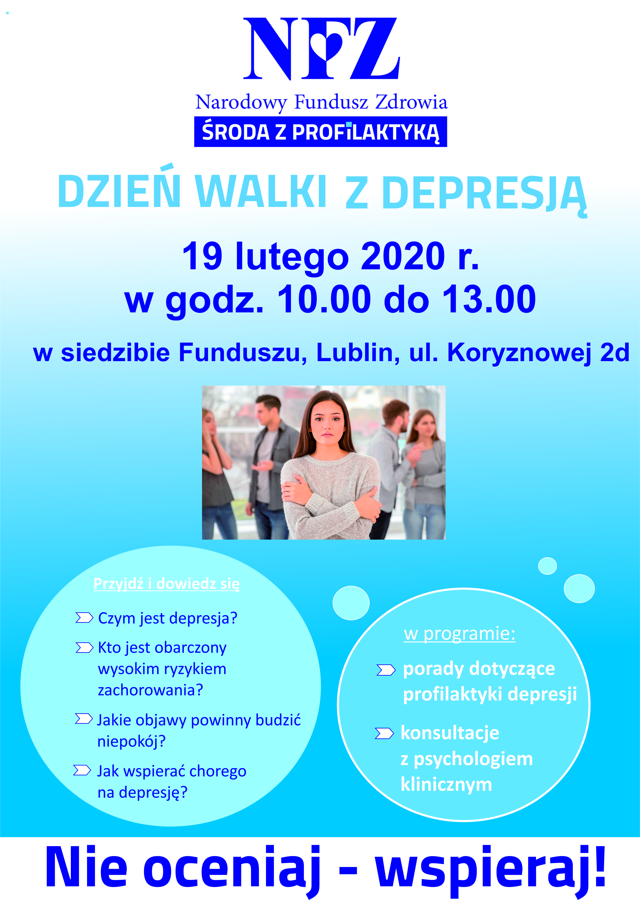 19 lutego Lubelski Oddział Wojewódzki NFZ zaprasza na Środę z Profilaktyką poświęconą depresji.