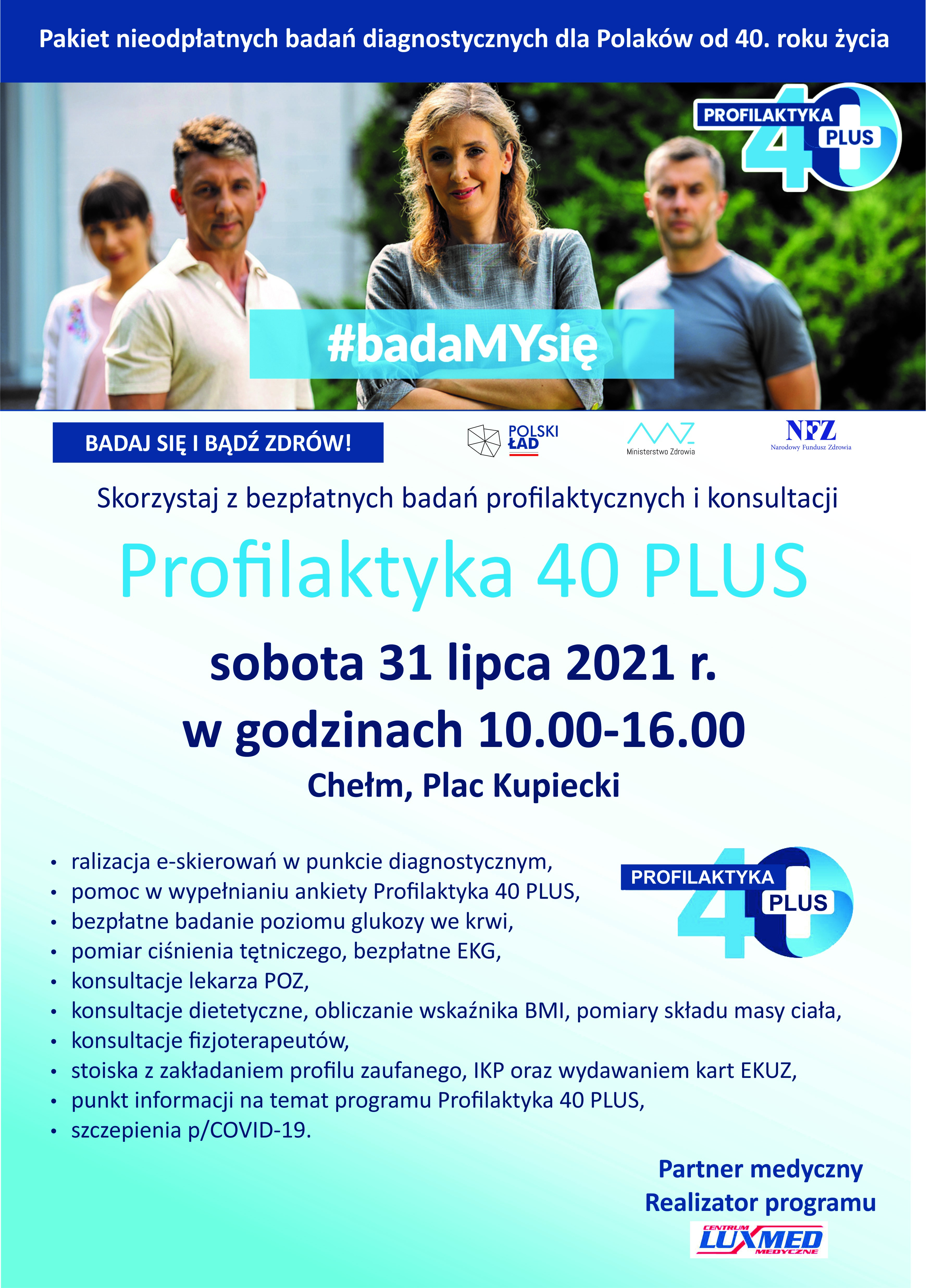 Lubelski Oddział Wojewódzki Narodowego Funduszu Zdrowia zaprasza w najbliższą sobotę, 31 lipca 2021 r. na Placu Kupieckim w Chełmie na bezpłatne badania profilaktyczne oraz na konsultacje ze specjalistami.