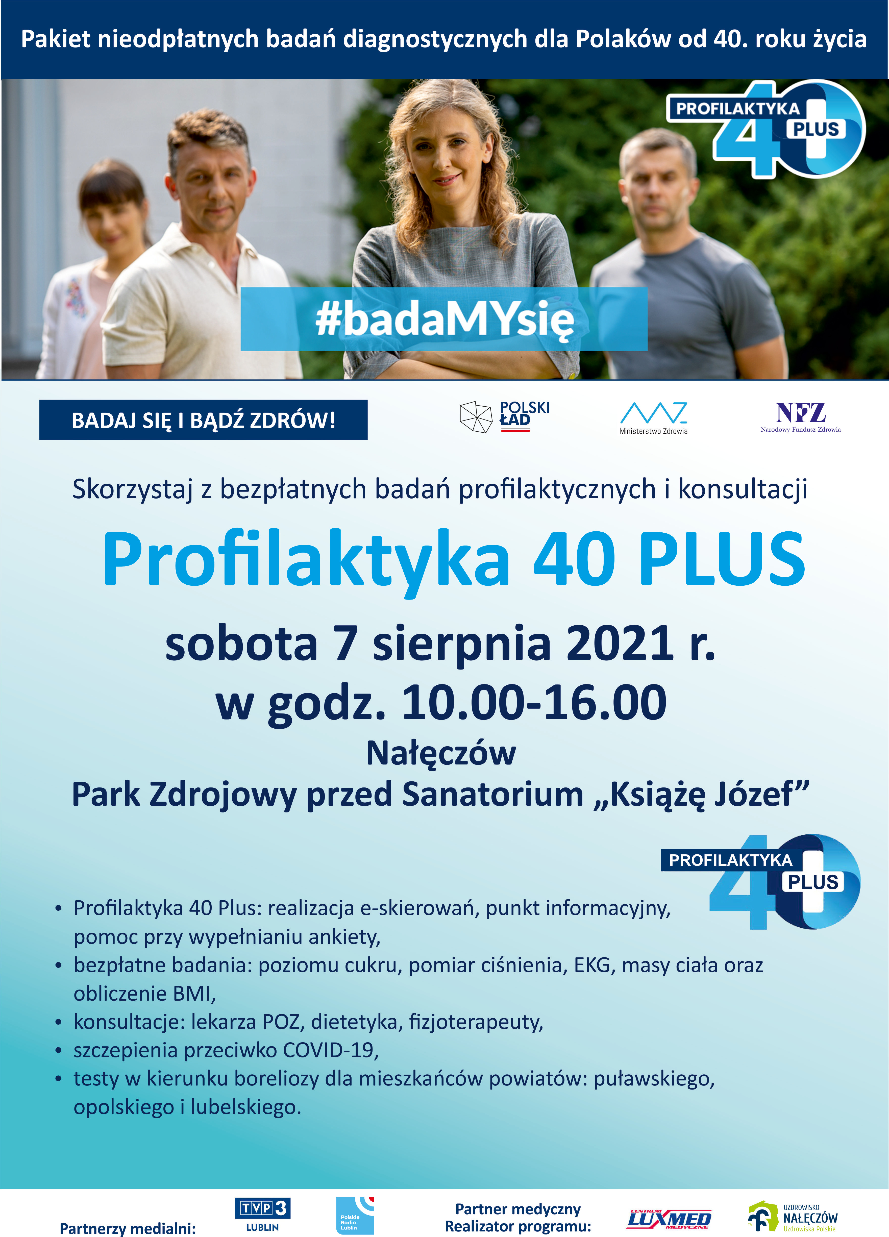 Lubelski Oddział Wojewódzki Narodowego Funduszu Zdrowia zaprasza w najbliższą sobotę, 7 sierpnia 2021 r. w Nałęczowie na bezpłatne badania profilaktyczne oraz na konsultacje ze specjalistami.