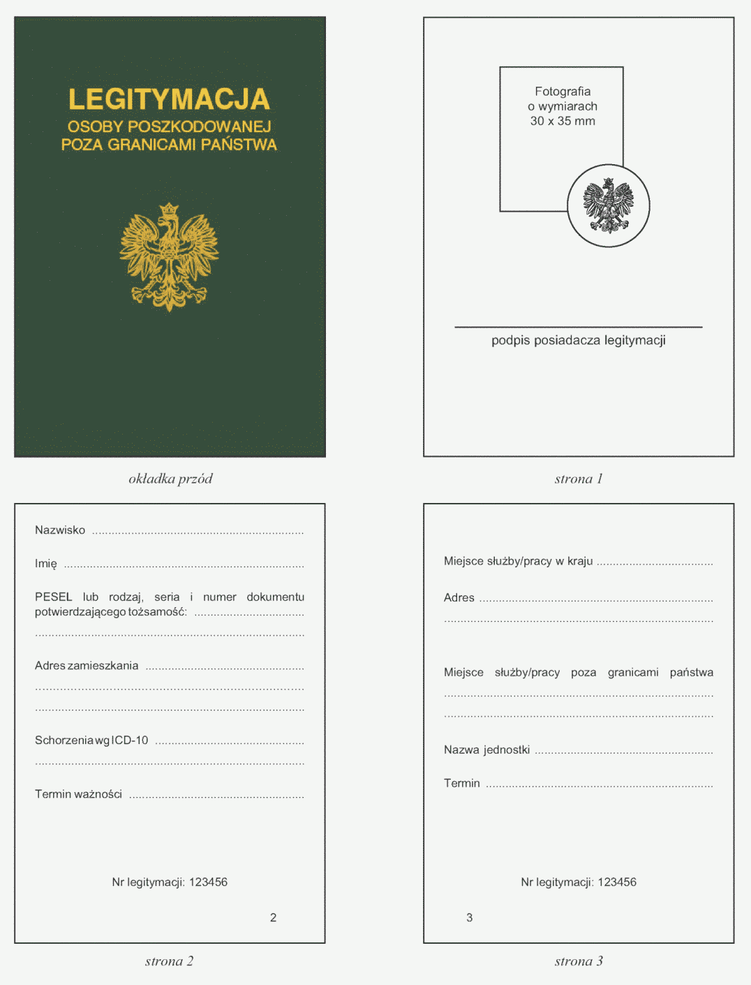 Wzór: „Legitymacja osoby poszkodowanej poza granicami państwa” (Dz.U.2012.345).