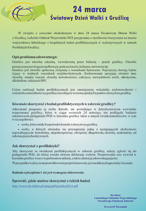 24 marca - Światowy Dzień Walki z Gruźlicą