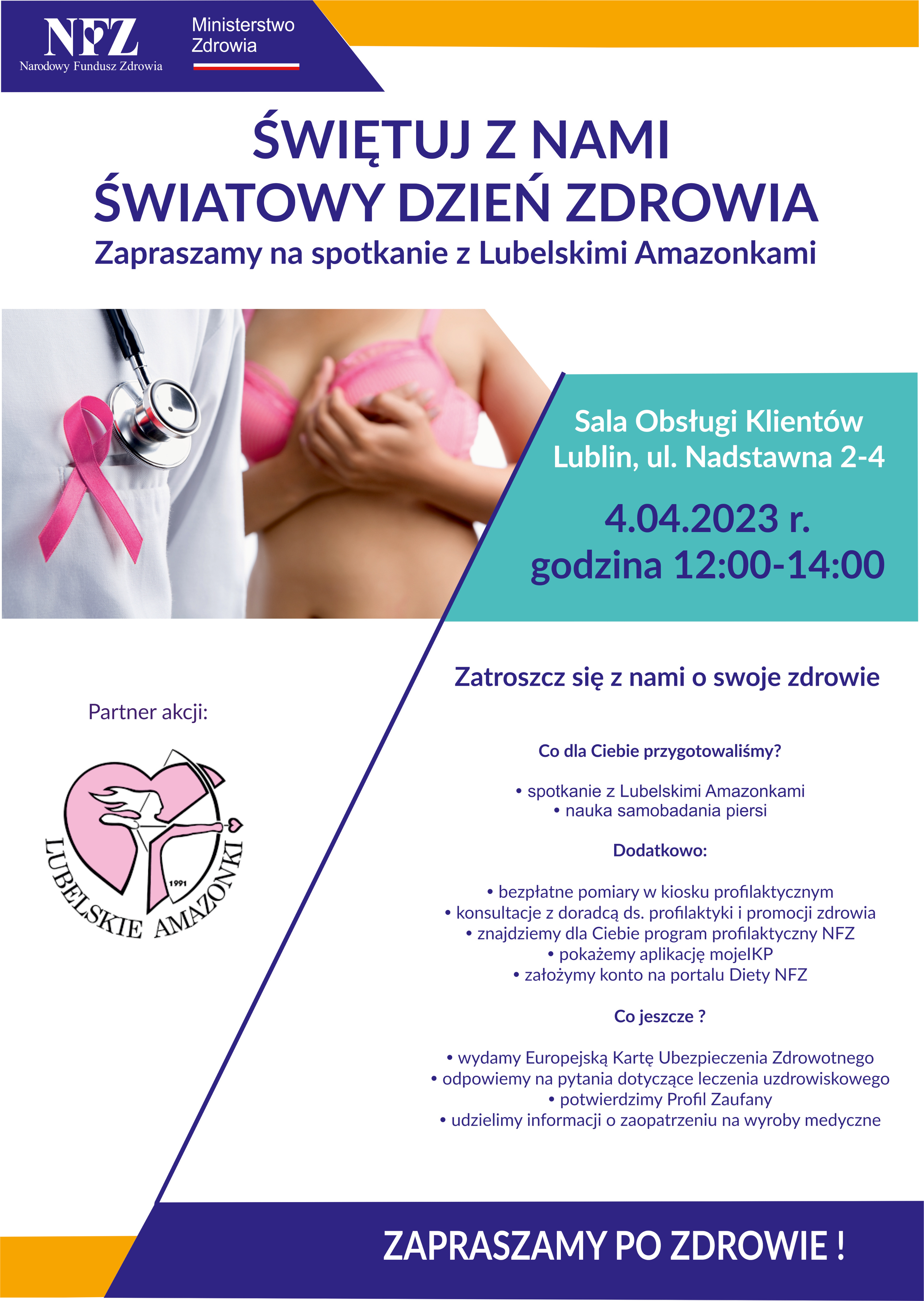 Gośćmi specjalnymi wydarzenia będą panie ze stowarzyszenia Lubelskie Amazonki. Panie będą miały ze sobą specjalne fantomy, na których będzie można nauczyć się samobadania piersi.